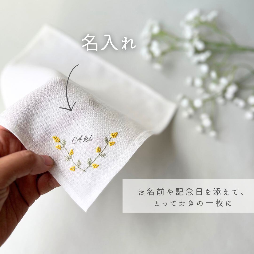 ハンカチの片隅に、"小さく咲いたお花たち"。