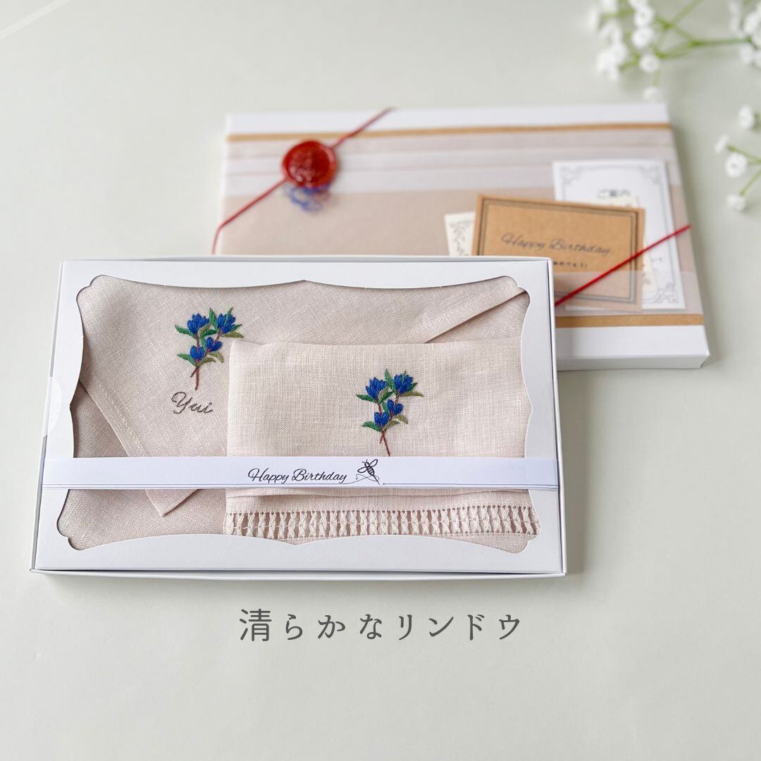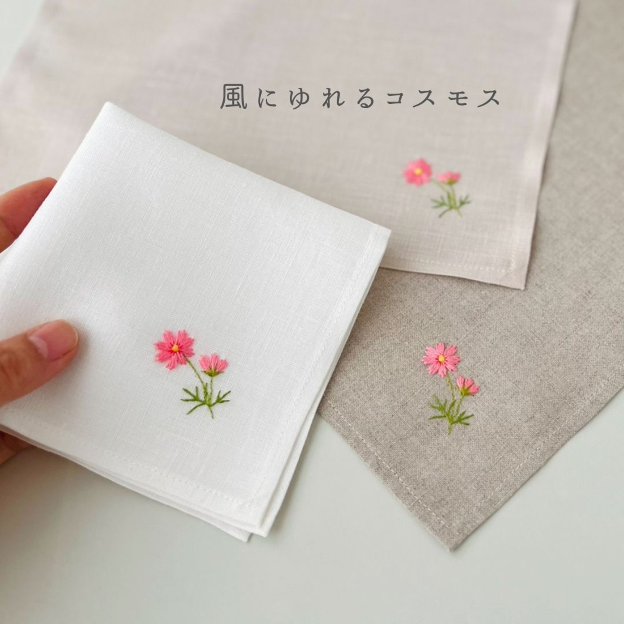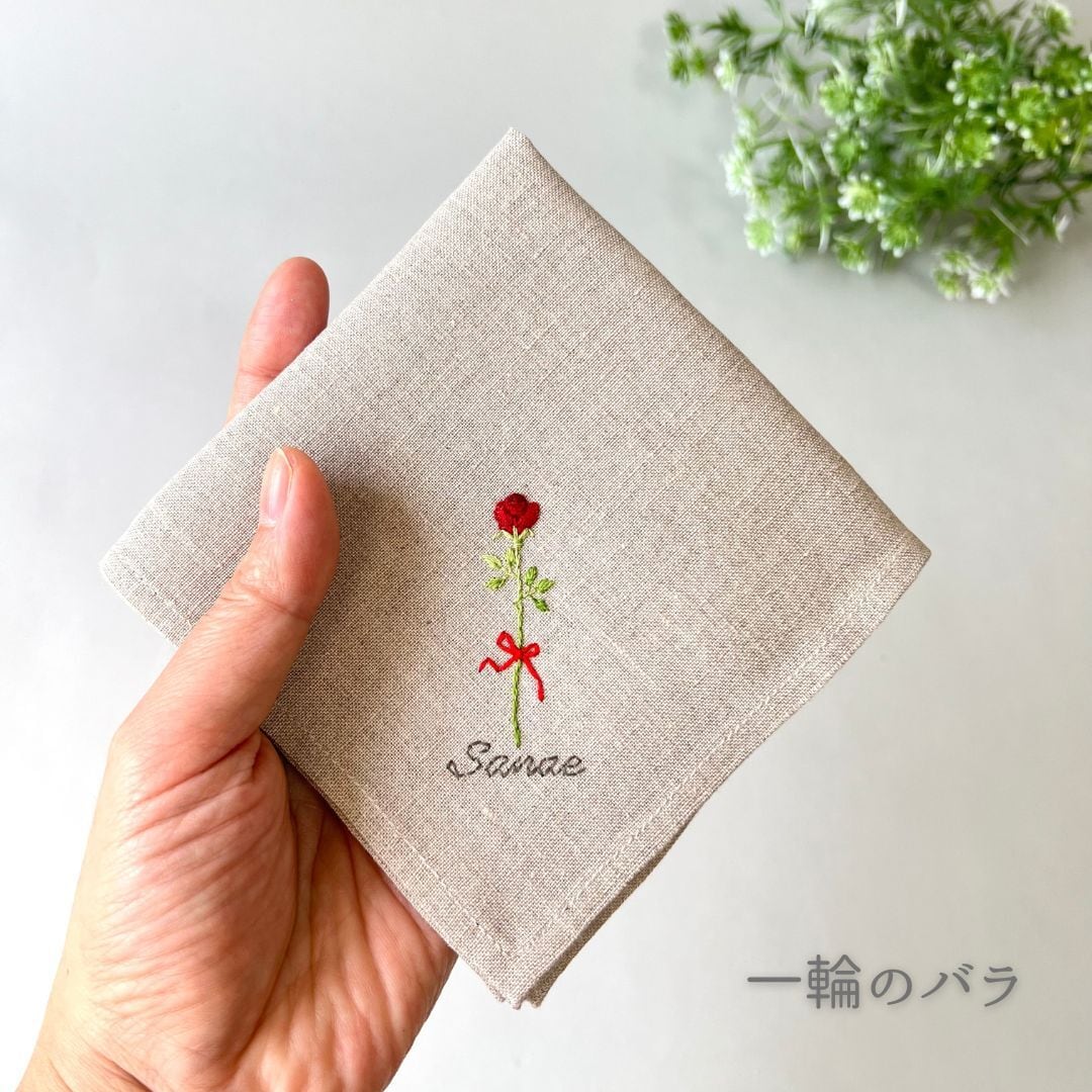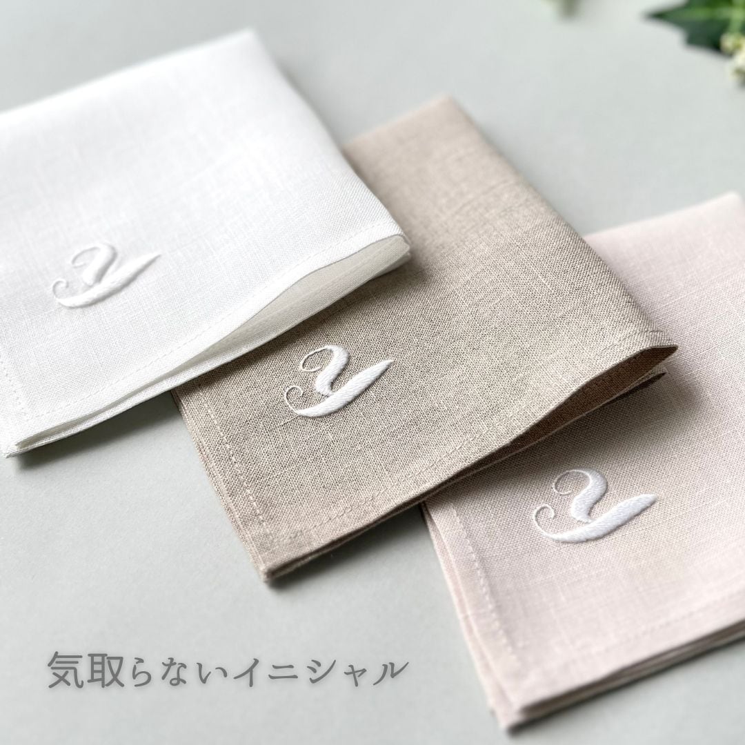 ①手刺繍ハンカチ(布色・サイズ・名入れ選択可)